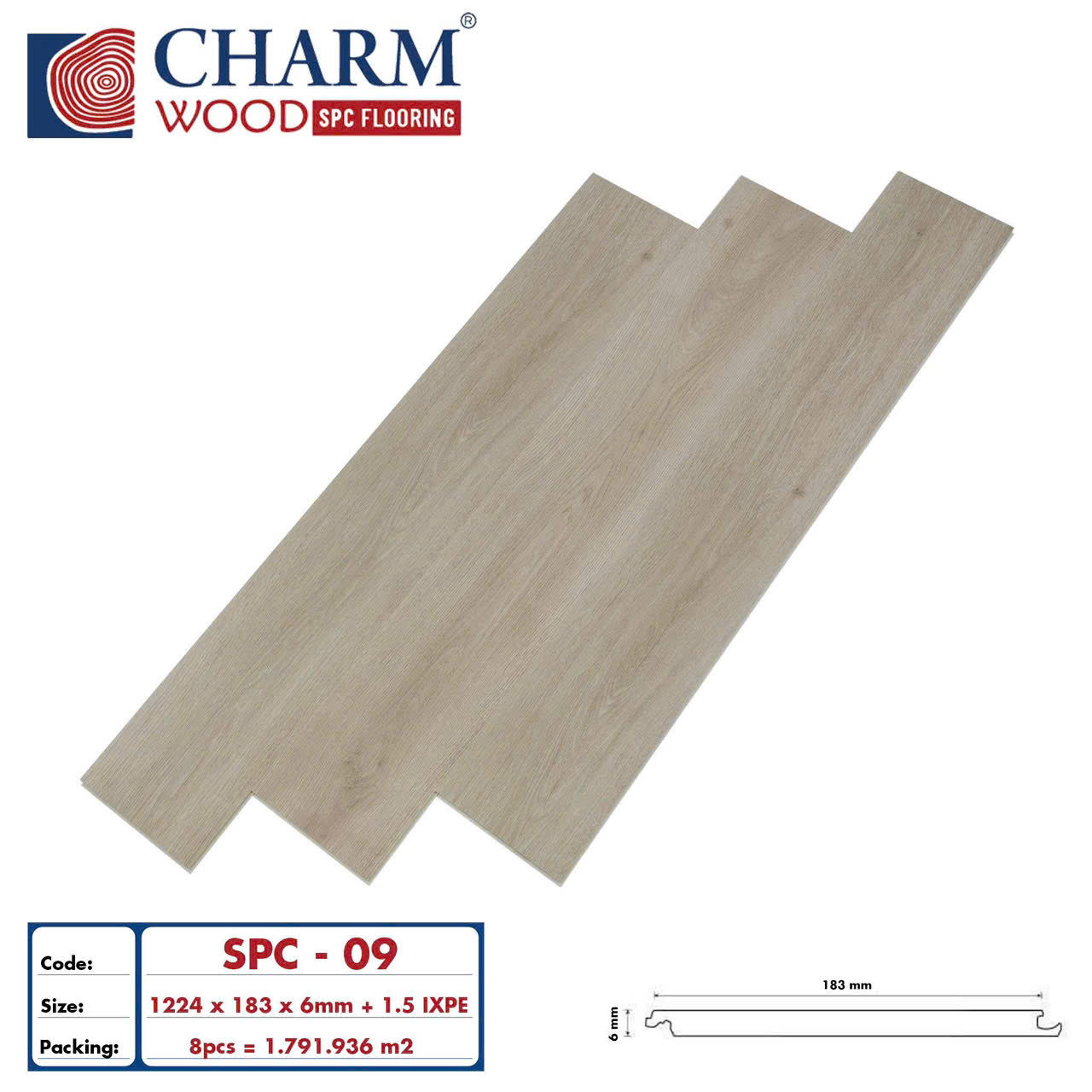 - Sàn nhựa Charm Wood SPC hèm khóa 6mm cao cấp với đế lót cao su, lót trực tiếp không cần trải xốp lót sàn